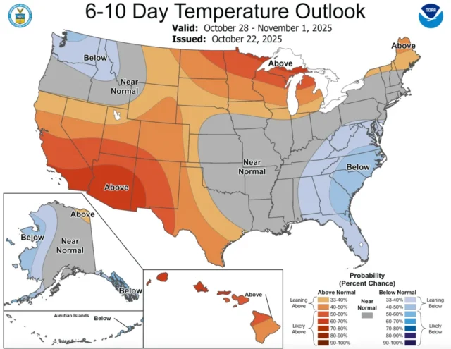 В соответствии с прогнозом Национального управления погоды в Дулуте, в северо-западном Висконсине возможна смешанная осадка — снег может сочетаться с дождем. Прогноз от Национального управления океанических и атмосферных исследований (NOAA) указывает на вероятность выше нормы температур вплоть до начала ноября, что может затруднить появление стабильного снежного покрова в регионе. Более того, ожидается, что в следующую неделю активные атмосферные системы принесут повышенные осадки, однако, скорее всего, в форме дождя.